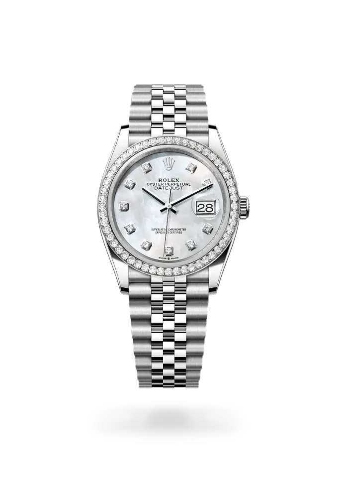 RolexDatejust 36Oyster, 36 mm, acciaio Oystersteel, oro bianco e diamanti M126284RBR-0011
