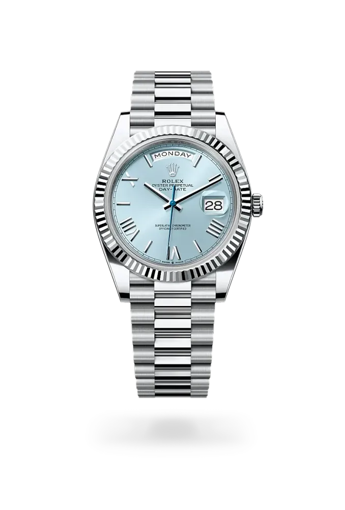 Il quadrante blu ghiaccio è la caratteristica discreta ed esclusiva che contraddistingue gli orologi Rolex in platino. Rolex utilizza il platino, il più nobile dei metalli, per i segnatempo più raffinati. Il raffinato colore del quadrante è disponibile unicamente per il Day‑Date, il Cosmograph Daytona, il Perpetual 1908 e il Land‑Dweller.