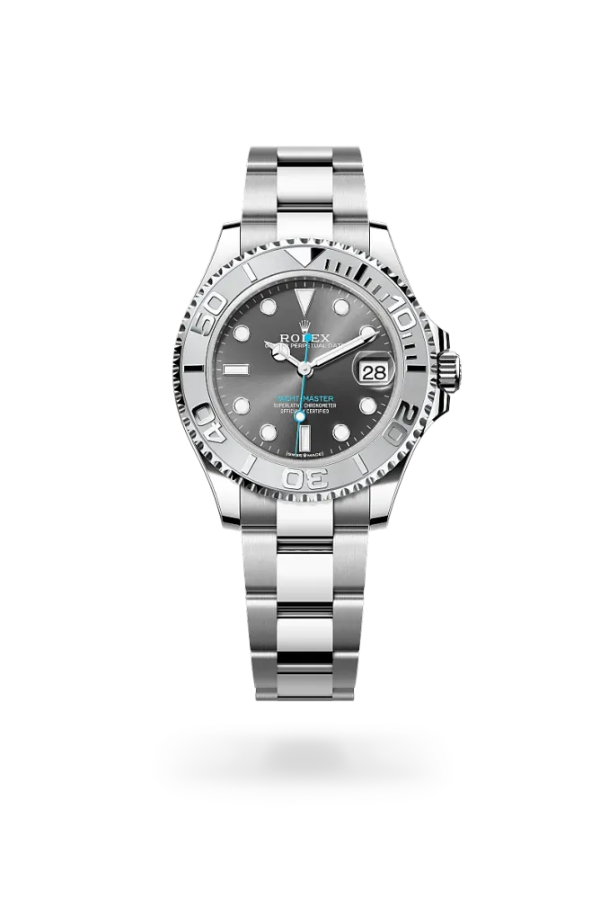 Molti orologi Rolex sono disponibili nell’ormai leggendaria combinazione di oro giallo, bianco o Everose e acciaio nota come Rolesor, ma il Rolesium è una creazione specifica, riservata esclusivamente allo Yacht‑Master. Mentre la cassa e il bracciale sono in resistente acciaio Oystersteel, la lunetta della versione Rolesium è realizzata in platino e conferisce all’intero orologio un candore argenteo e una vibrante luminosità, segni di un lusso inconfondibile.